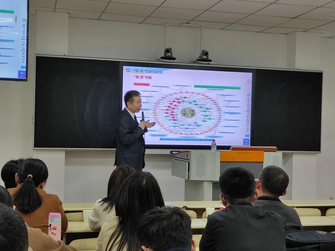 最后,利用多个方面有效组分的筛选研究,揭示了复方发挥疗效作用机制,阐明了药效物质的“物-效”关系,在“物-效”关联方面,孟宪生科研团队将药材、成分、组分、药效学等多方面进行了有机融合,从而达到抗炎镇痛,提高胃动力的临床效果。此次汇报在掌声中圆满结束。